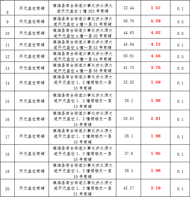 (一)拍租鎮(zhèn)雄發(fā)展集團有限公司國有門面3年期使用權,詳見下表: